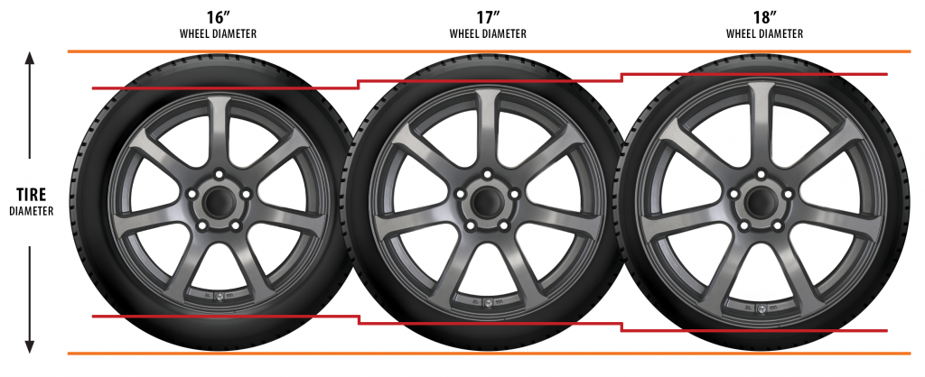 One of the best ways to enhance your vehicle’s look and handling is to install larger alloy wheels with lower-profile tires. This process is called “plus-sizing.” Plus-sizing means more rubber in contact with the road, to improve your vehicle’s stability, responsiveness, handling, braking, and appearance. This works by increasing the diameter of the wheels (+1 inch, +2 inch, etc.) and combining them with shorter, wider and higher-performance oriented tires. Since the overall diameter of the tire doesn’t change, the gearing and speedometer accuracy remain the same.